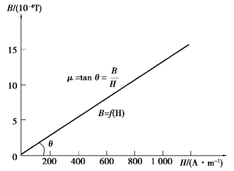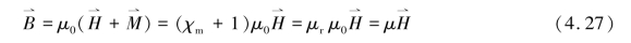 非铁磁性的各向同性的磁介质,H 和B 之间满足线性关系,如图4.26 所示。 铁磁性介质的μ、B、H 之间有着复杂的非线性关系,如图4.27 所示。