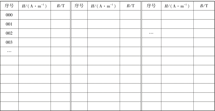 铁磁材料被测样品有关实验数据的采集和显示见表4.13。