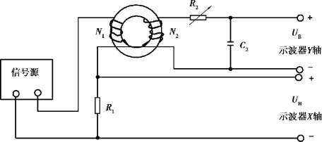 式中的R1、L、N1 均为常数,这表明示波器X 轴输入电压的大小UH(即UR1)与磁场强度H 成正比,所以由UH 可确定H 的瞬时值,即