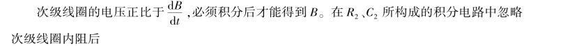 设样品的截面积为S,根据法拉第电磁感应定律,在匝数为N2 的次级线圈中,感应电动势为