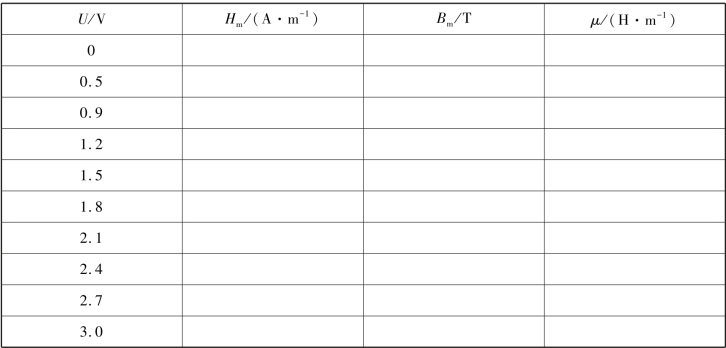 测绘基本磁化曲线及μ-H 曲线记录表见表4.10。