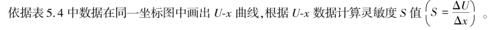 ②确定U-x 曲线的线性范围,求出位移传感器的测量灵敏度。