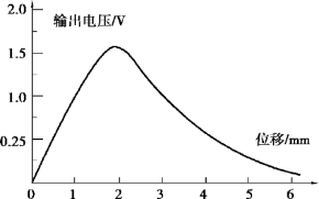 图5.9 是反射式光纤位移传感器的输出特性曲线,利用这条特性曲线可以通过对光强的检测得到位移量。 反射式光纤位移传感器是一种非接触式测量,具有探头小,响应速度快,测量线性化(在小位移范围内)等优点,可在小位移范围内进行高速位移检测。