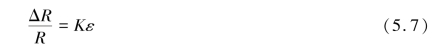 当金属丝受外力作用时,其长度和截面积都会发生变化,从式(5.6)中可很容易看出,其电阻值会发生改变,假如金属丝受外力作用而伸长时,其长度增加而截面积减少,电阻值便会增大。 当金属丝受外力作用而压缩时,其长度减小而截面增加,电阻值则会减小。 只要测出加载电阻的变化(通常是测量电阻两端的电压),即可获得应变金属丝的应变情况。 描述电阻应变效应关系式为