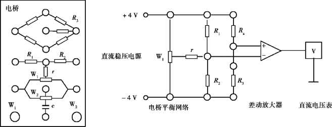 ②利用电阻应变片的电桥原理设计电阻应变片测试电路图。