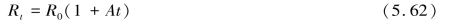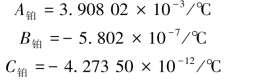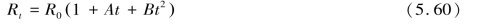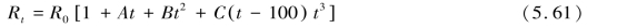 式(5.61)中,R0 为0 ℃时的电阻值,Rt 为t ℃时的电阻值;A、B、C 为常数。