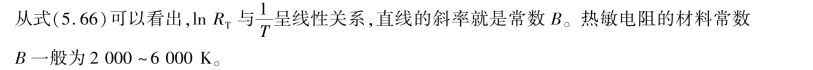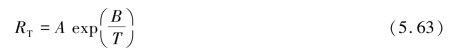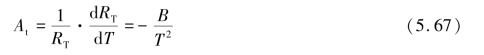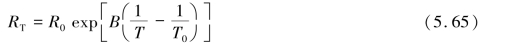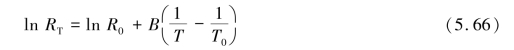 从式(5.65)可以看出,只要知道常数B 和在温度为T0 时的电阻值R0,就可以利用式(5.65)计算在任意温度T 时的RT 值。