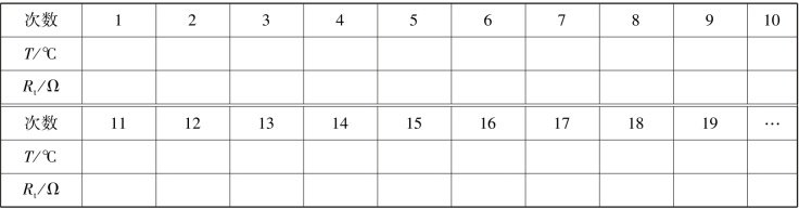 测量室温到120 ℃范围内热敏电阻温度传感器的电阻随温度变化的曲线,步骤如下。