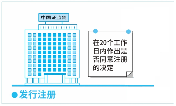 中国证监会收到上交所报送的审核意见、发行人注册申请文件及相关审核资料后,履行发行注册程序。发行注册主要关注上交所发行上市审核内容有无遗漏,审核程序是否符合规定,以及发行人在发行条件和信息披露要求的重大方面是否符合相关规定。中国证监会认为存在需要进一步说明或者落实事项的,可以要求上交所进一步问询。中国证监会在20个工作日内对发行人的注册申请作出同意注册或者不予注册的决定(见图22)。