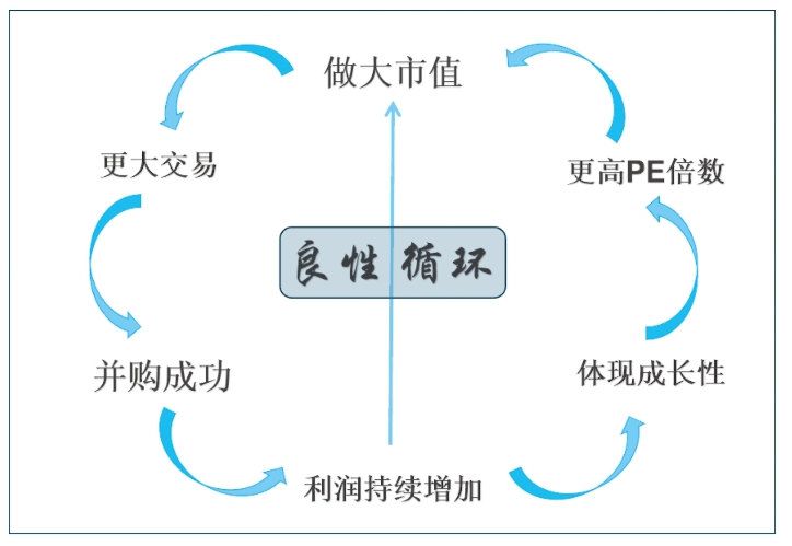 当并购成功时,市场占有率和利润的提高也会带来市值的提高;另一方面也体现企业的高成长性,会有更高的市盈率,也会促进市值的增加。这是产业并购与市值增长的良性循环。