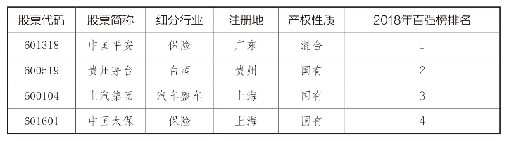 表1 2018年中国上市公司最具竞争力企业100强