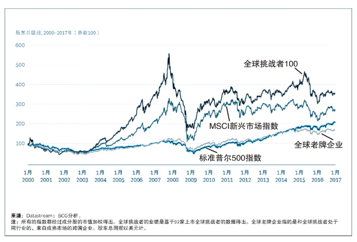 如图67显示,自2000年以来,“全球挑战者”100名的股东回报率远高于全球老牌企业、标普指数、MSCI新兴市场指数。读者朋友们可以借此思维去选择科创股,因为开阔的思维将决定选股方向。