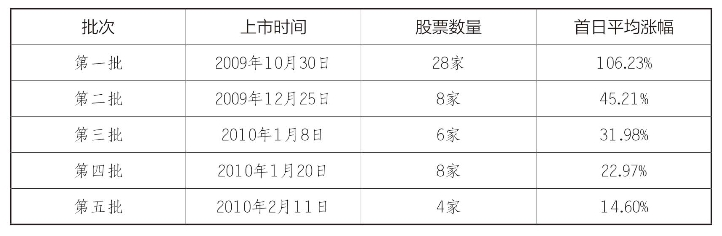 从表5中可以明显看出第一批上市的股票最受欢迎,平均涨幅度也是最大的,随后四批相比之下逐渐递减。笔者认为,在科创板第一批上市首日的平均涨停理应比上述大许多,因为前5个交易日不限涨跌幅。其次,同样也会出现逐批递减的可能。