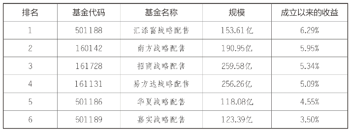 2018年7月5日,6只独角兽战略配售基金成立,分别是汇添富战略配售(LOF)(501188)、易方达战略配售(LOF)(161131)、华夏战略配售(LOF)(501186)、嘉实战略配售(LOF)(501189)、南方战略配售(LOF)(160142)、招商战略配售(LOF)(161728),这些基金概况如表6所示。其中,汇添富、华夏、嘉实3家在上交所挂牌交易,易方达、招商、南方在深交所挂牌交易。所以交易代码有所差异,上海是50开头,深圳是16开头。在任何股票行情软件输入代码都可查看该基金的行情。
