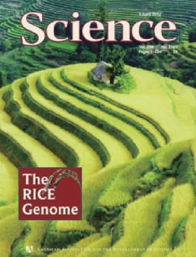 图1-4 我国科学家完成的水稻基因组测序研究成果发表在国际权威杂志Science上,并在封面配图