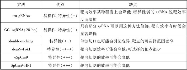 表4-3 提高CRISPR/Cas9特异性的方法