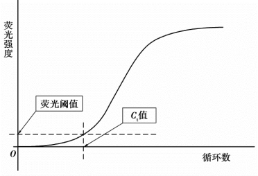 荧光阈值是指在荧光扩增曲线上人为设定的一个值,它可以设定在荧光信号指数扩增阶段的任意位置上,一般将PCR反应前15次循环的荧光信号作为荧光本底信号,荧光阈值是PCR的3~15次循环荧光信号标准差的10倍。荧光阈值原则上要大于样本的荧光背景值和阴性对照的荧光最高值,同时要尽量选择进入指数期的最初阶段,并且保证回归系数大于0.99,荧光信号超过阈值才是真正的信号。
