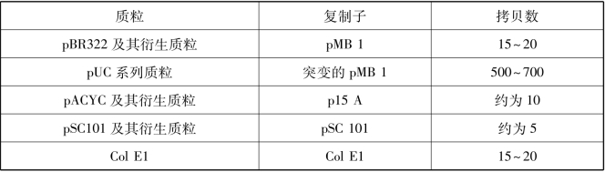 质粒DNA复制转录的进行依赖于宿主编码的蛋白质和多种酶,但是不同的质粒在宿主内采用的酶群有很大差异,致使它们在宿主中的复制程度有很大的不同。质粒在宿主中的拷贝数是由质粒DNA复制起始位点控制的,复制子的不同可使质粒拷贝数相差很大,一些质粒可以维持高达500~700个拷贝/细胞,有些仅能维持1~2个拷贝/细胞的最低水平。通常情况下一个质粒只有一个复制起始位点,在极少数情况下或通过融合构建可产生含有两个以上的复制起始位点,但在某一宿主细胞中,只有一个复制起始位点具有复制活性。
