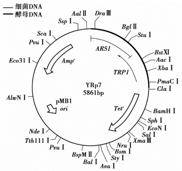 图6-7 YRp7载体的结构示意图
