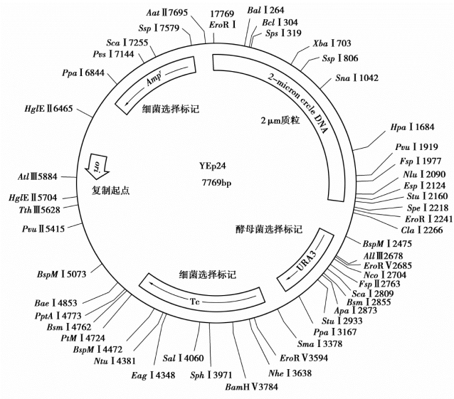 图6-9 YEp24载体的物理图谱