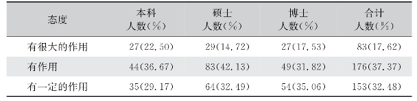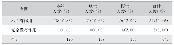 88%的带教老师对这些激励政策持肯定态度,认为对自己的带教工作有促进作用(表28)。Spearman等级相关分析结果显示不同学历的带教老师对激励政策的态度没有差异(ρ=0.080,P=0.083)。