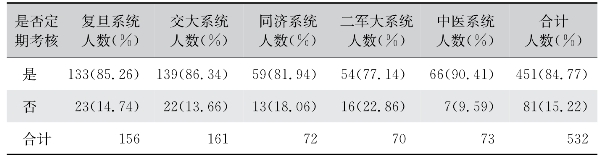 对带教情况定期考核方面,85%的被调查者提到所在单位有进行定期考核(表29)。不同系统的定期考核情况比较,差异没有统计学意义(χ2=5.734,P=0.220)。