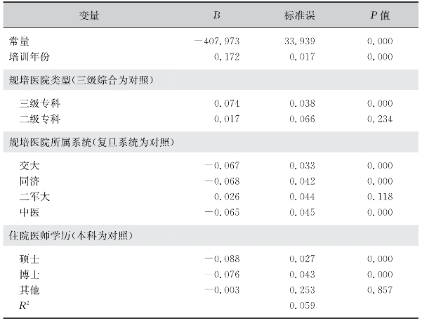 表87 住院医师对规培认知程度的随机效应模型结果