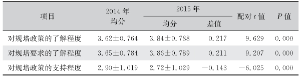 表84 住院医师对规培政策的认知程度对比(2015年与2014年)*