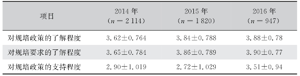 表86 住院医师对规培政策的认知程度(3年对比)*