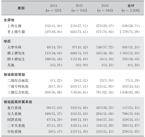 接受问卷调查的2215名住院医师毕业生中(表135),女性的比例较高,占总人数的63.39%。规培系统中,交大系统和复旦系统的人数最多,分别占总调查对象的35.94%和25.15%。此外,被调查对象中,71.29%住院医师为非上海生源。
