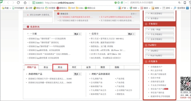 图8 第二步:进入网站下拉页面后点击“黄金”选项