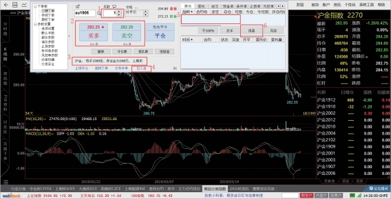 登录实盘账户后,如图33所示。1处可以选择买卖手数。2处选择做多单或者做空单。3处是现在界面交易品种的说明。4处为出入金选项。5处将会显示未来持有单子的买卖信息。6处可以设置止损止盈等。