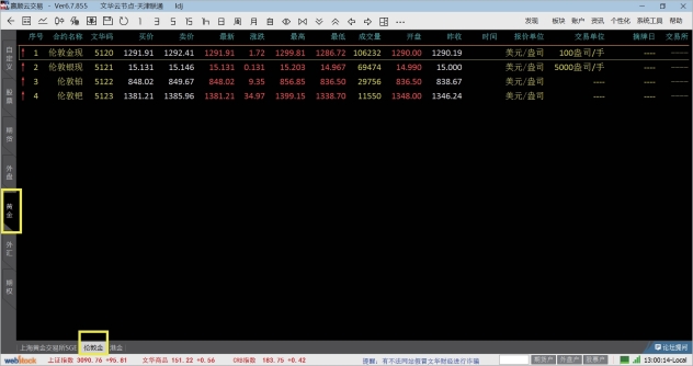如图31所示,点击“黄金—伦敦金”,就可以显示行情。