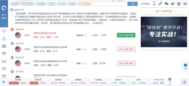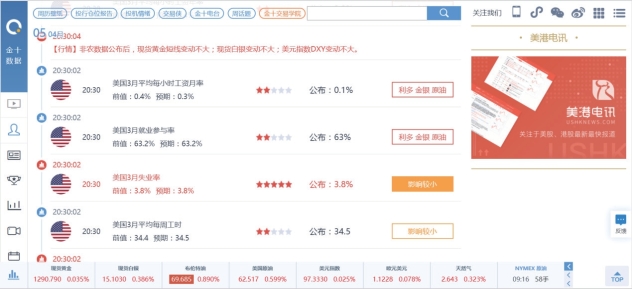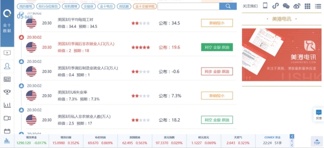 美国非农数据也叫美国非农业人口就业数据,其表现形式为每月非农业人口就业新增多少职位。美国非农数据会在每个月第一周的周五晚间公布,是每月最为重要的经济数据,每当这天来临,全世界的金融市场,都可能出现一场腥风血雨。它能反映出制造业和服务业的增长情况,数字增加则表明企业增加生产,经济步入扩张时期,是健康的经济状况,暗示美联储将要加息。由于加息将在其他条件保持不变的情况下引起本国货币的升值,从而利好美元,利空黄金。反之,公布的非农数据较差,就利好黄金,利空美元,它和美元正相关,和黄金则是反向关系。