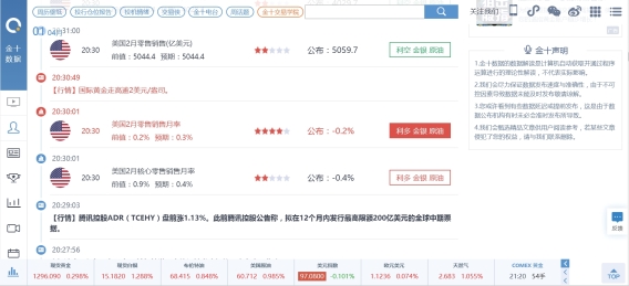美国零售销售指数是用以衡量消费者在零售市场的消费金额变化,核心零售销售数据由剔除汽车、食品和能源的零售数据统计得出。如果零售额提升,代表个人消费支出的增加,则经济情况好转,利率可能升高,利多美元,利空黄金。反之如果零售额下降,则代表景气趋缓或不佳,利率可能调降,利空美元,利多黄金。美国零售销售月率内容如图54所示。