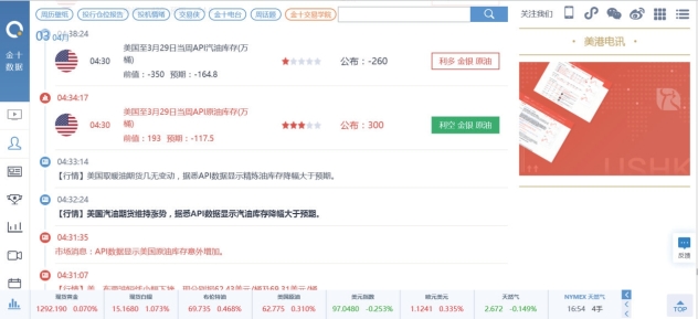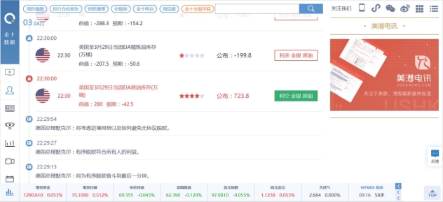 美国EIA原油库存数据由美国能源信息署统计公布原油库存的变化,实际上反映了美国政府对油价的态度。此数据主要反映了美国当周原油库存数量,对于沥青及原油提炼品(燃油、柴油等)有较大影响。同时对原油市场、外汇市场以及黄金等贵金属市场都会造成一定的影响,投资者需密切关注。一般来说数据大于预期,利多美元,利空黄金。反之,数据小于预期,利空美元,利多黄金。美国EIA原油库存数据内容如图53所示。