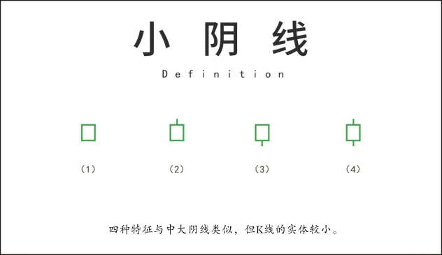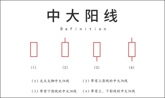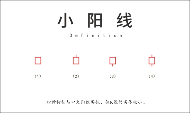 K线从形态上可分为阳线、阴线和同价线3种类型。阳线是指收盘价高于开盘价的K线,阳线按其实体大小可以分为大阳线、中阳线和小阳线。阴线是指收盘价低于开盘价的K线,阴线按其实体大小可以分为大阴线、中阴线和小阴线。同价线是指收盘价等于开盘价,两者处于同一个价位的一种特殊形式的K线。同价线常以“十”字形和“T”字形表现出来,故称十字线、T字线。同价线按上下影线的长短、有无,又可以分为长十字线、十字线、T字线、倒T字线、一字线等。