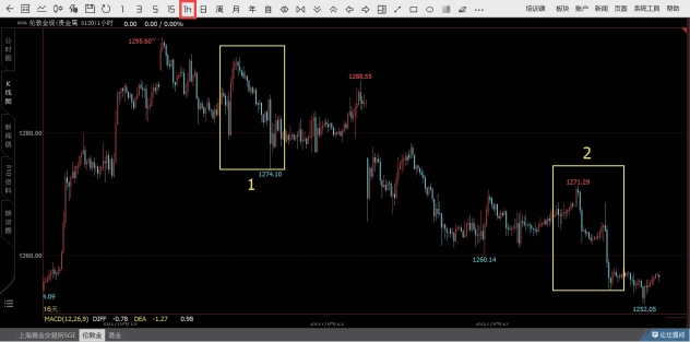 由图84、图85可以观察出,出现在相对较大周期中的阴包阳组合,在相对小周期中其实就是一个倒V字形的反转形态。相对小周期的倒V形反转力度越大,相对大周期的阴包阳中的阴线下跌幅度就会越强;反之,倒V形反转力度越弱,阴包阳组合越可能失败。