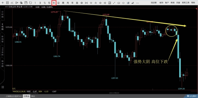 在一轮上涨后的高位,或者在高位构顶之后,突然一根长阴线从天而降,那么这根阴线可能吞没前5~10根K线。