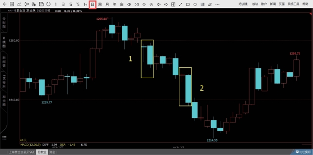 由图111和图112可以观察出,出现在相对大周期中的仙人指空组合,在相对小周期中其实就是一轮下跌后行情又上涨随后再下跌并跌破前低的一个过程。在相对小周期中,第二次下跌的力度越强,那么反映到大周期中的阴线就会越大。