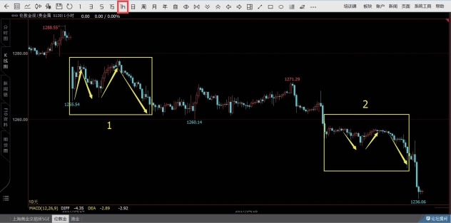 仙人指空组合也属于一种倒V形反转,通常出现在60分钟图或日线图中意义较大。出现的阶段位置和相伴的阴线长短还有实体长短都有关联意义。如果出现在大形态的相对顶部或一轮单边下跌行情的中途,那么极有可能随后延续下跌行情,但如果处于大形态的相对低位,行情就很可能由空转多,也就是说在小周期中虽然倒V形反转下去了,但随后可能一个V字反转又上来了,因为其处在低位、底部、下轨、支撑位,除非大形态向下变盘跌破下轨,否则高多低空,还是看多。