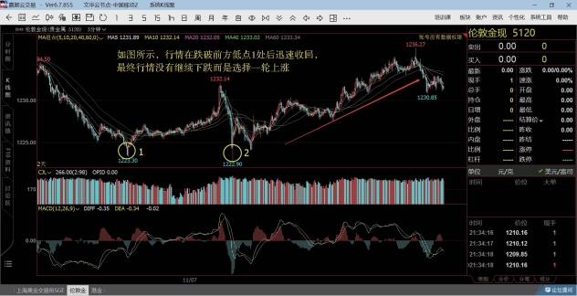 (3)假突破重要点位。例如在上涨中假突破重要阻力位,但很快又回落。在下跌中假跌破重要支撑位,但很快又回升,这也属于一种诱多诱空的现象。