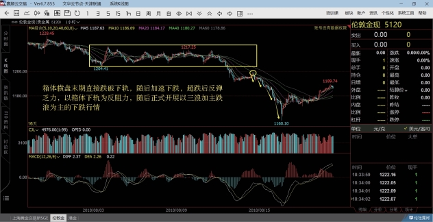 (3)在箱体末端区域重心下移时,跌破下轨时可立即追进空单或增仓空单。