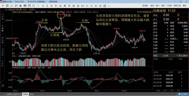 头肩顶是顶部形态中较为典型的大顶部特征形态之一,也是在国际黄金市场中最为常见的形态之一,特别是在小周期图中几乎每天都有出现。