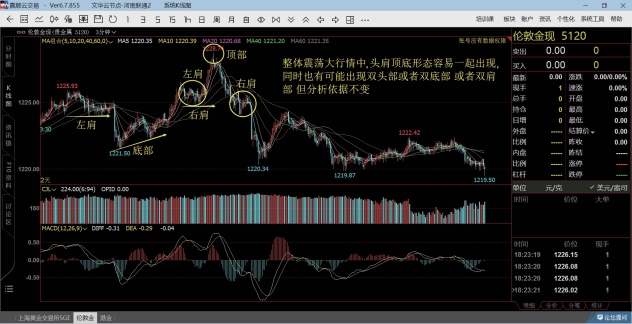 这种宽幅震荡的局面,买点一般在区间内的上下轨形态,也就是头肩顶的顶部和头肩底的底部,至于左肩和右肩,实际上是区间内中轴左右的位置,上下变盘方向不明,需要轻仓谨慎操作。