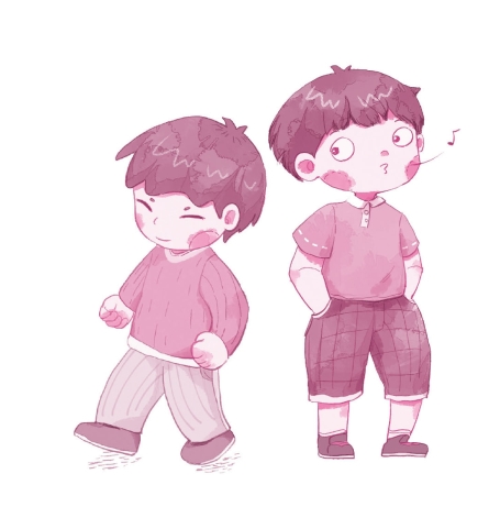 这时,我的那位伙伴挺身而出。对,他也不过是一个七八岁的小孩儿罢了,但是他把我挡在身后,大声地对那些看热闹的小孩儿讲:“有什么好笑的!走!走!”