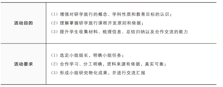在导师的精心策划下,班级召开“研学旅行高峰”论坛,分小组收集研学旅行相关政策文件、查阅理论书籍资料,对研学旅行的概念、学科性质、教育目标、课程开发原则和依据等进行交流汇报。表3-1所示为任务实施方案表。