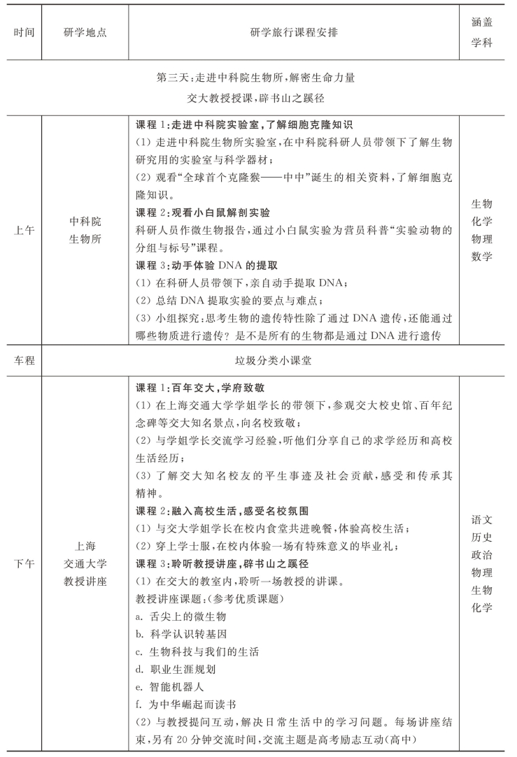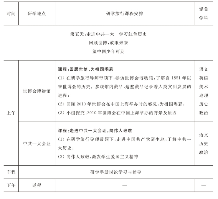 (1)研学旅行课程的设置连接学生校内教材知识,把课本教材与研学旅行课程进行有效结合。