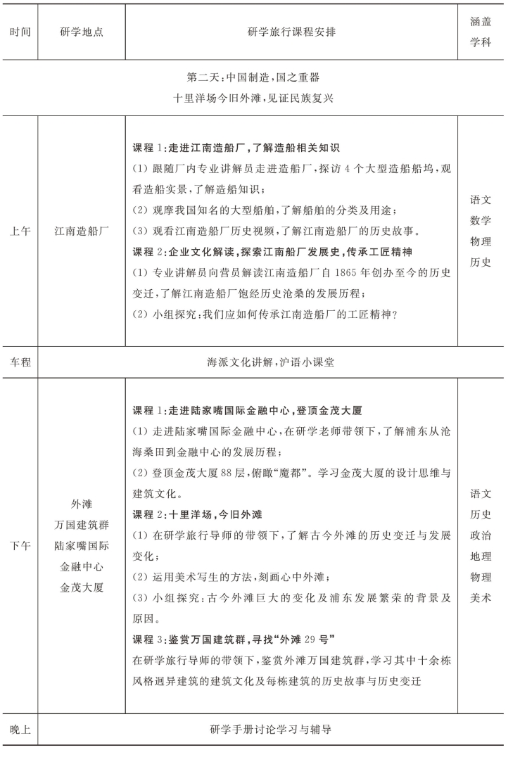 (2)在研学旅行课程中,强调学生的自主探究性学习,提炼实践知识,助力校内课程完善。