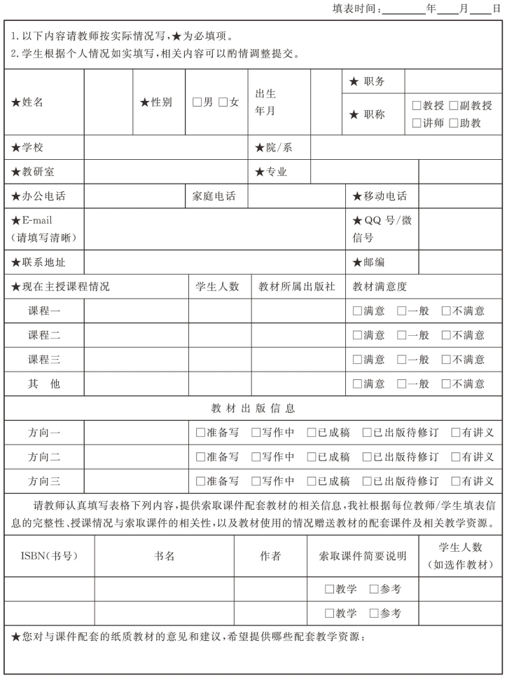 教学课件资源申请表